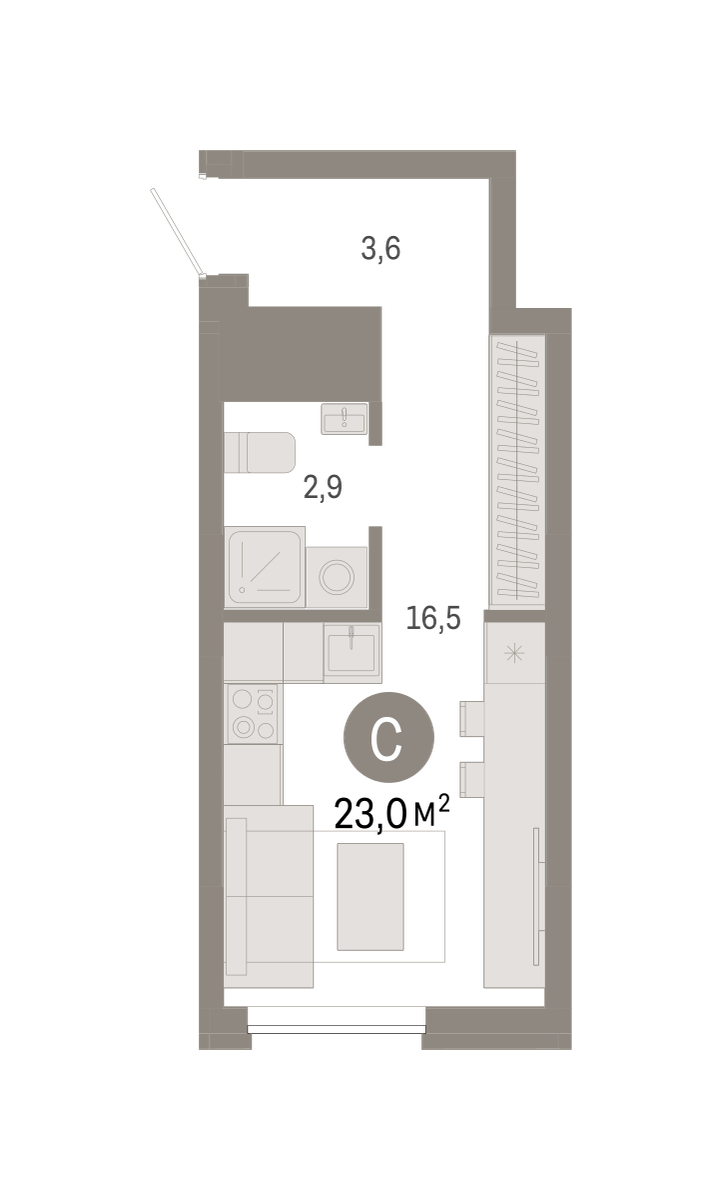 Квартиры-студии в «Северном квартале» — это квартиры с кухонной зоной, местом для отдыха и сна, ванной комнатой, нишами под хранение или отдельной гардеробной. Полезная площадь квартиры расширяется за счёт тёплой лоджии, где удобно разместить рабочий кабинет.
