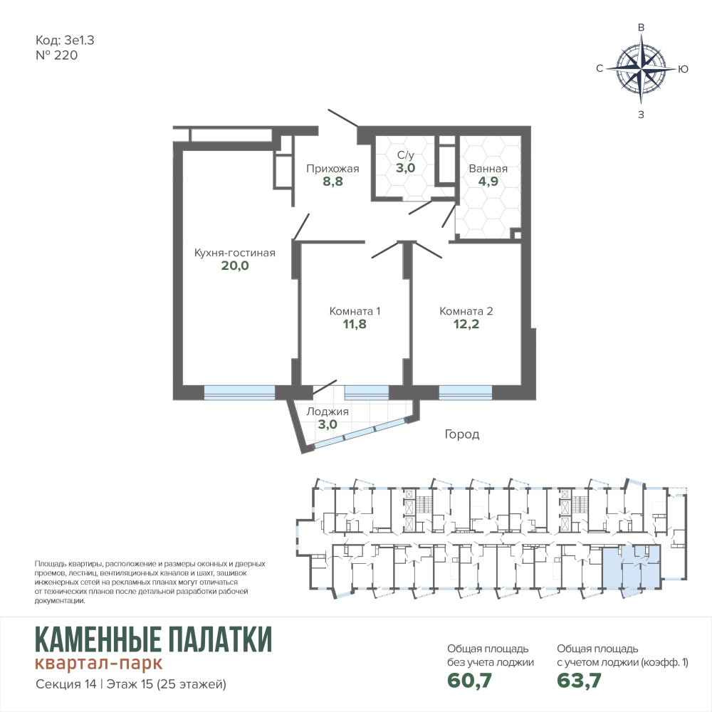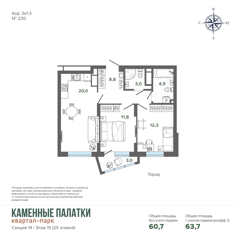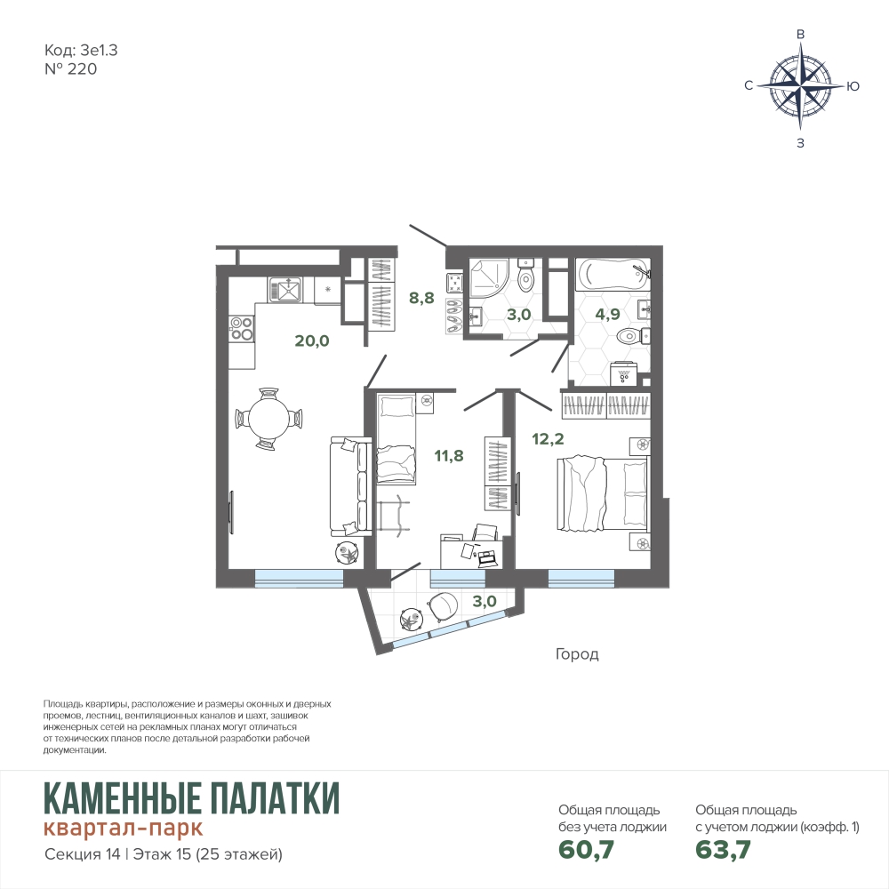 63.67 м² | 15 - 25 эт.