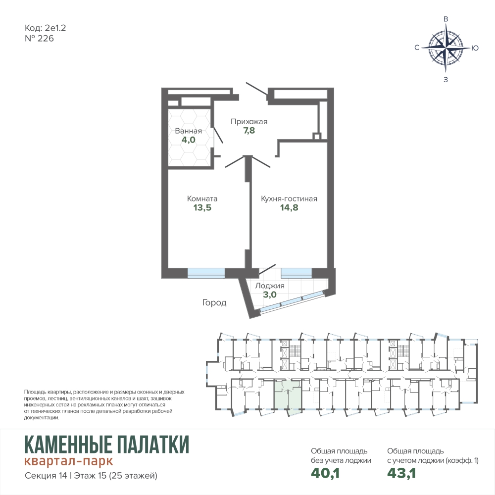 43.11 м² | 15 - 25 эт.