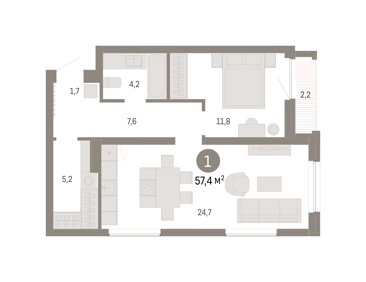 Продаётся с кладовой. Квартира с кухней-гостиной и одной спальней в Южных кварталах. Особенности планировки: гардеробная, лоджия, предчистовая отделка. № квартиры в нашей базе: ЮКВ11-Ж1.14.5.