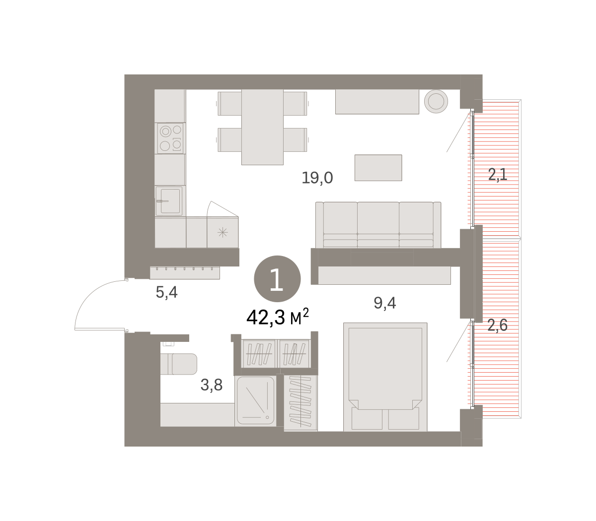 42.00 м² | 7 - 9 эт.