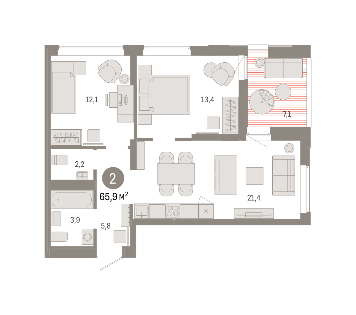 Продаётся с кладовой. Квартира с кухней-гостиной и двумя спальнями в районе Шишимская горка. Особенности планировки: второй санузел, предчистовая отделка, терраса на крыше. № квартиры в нашей базе: ШГР16-Ж5.14.1.