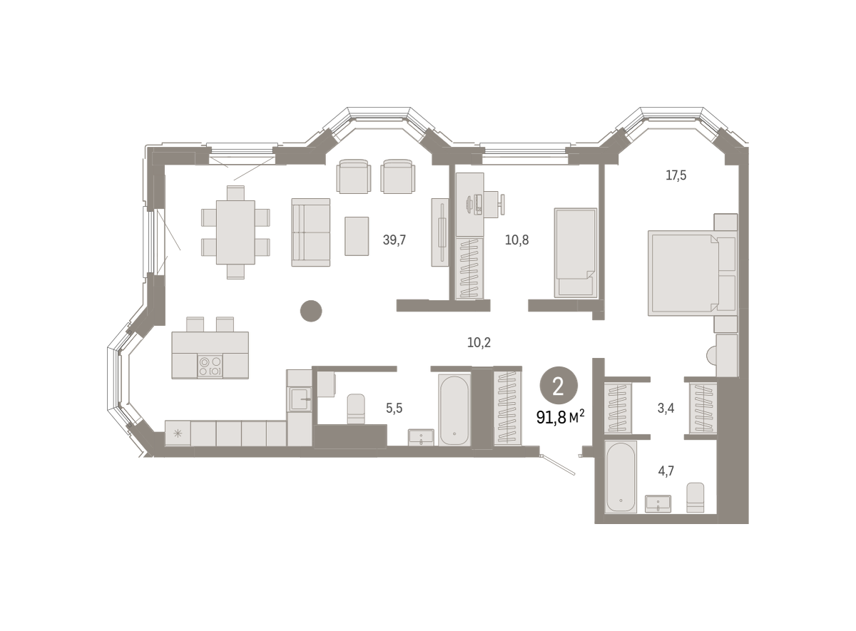 Продаётся с кладовой. Квартира с кухней-гостиной и двумя спальнями в квартале «На Некрасова». Особенности планировки: второй санузел, мастер-спальня, предчистовая отделка. № квартиры в нашей базе: НКР02-Ж1.19.4.