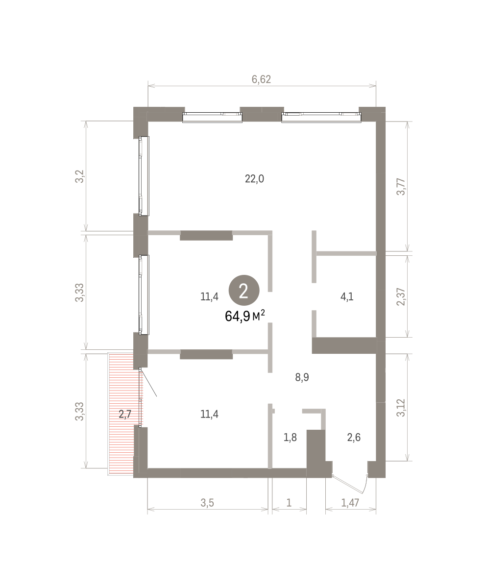 Продаётся с кладовой. Квартира с кухней-гостиной и двумя спальнями в квартале «Траектория». Особенности планировки: балкон, второй санузел, предчистовая отделка, разнесённые спальни. № квартиры в нашей базе: МНВ01-Ж1.13.8.