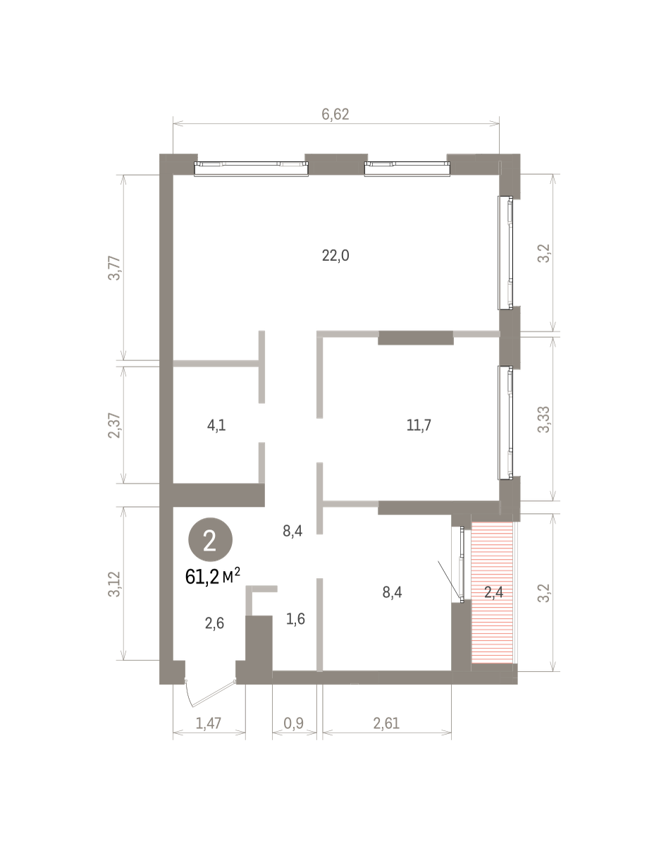 61.30 м² | 2 - 19 эт.