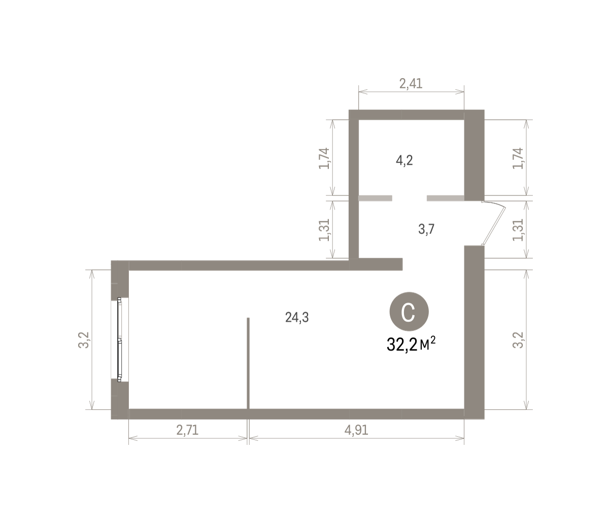 32.00 м² | 18 - 19 эт.