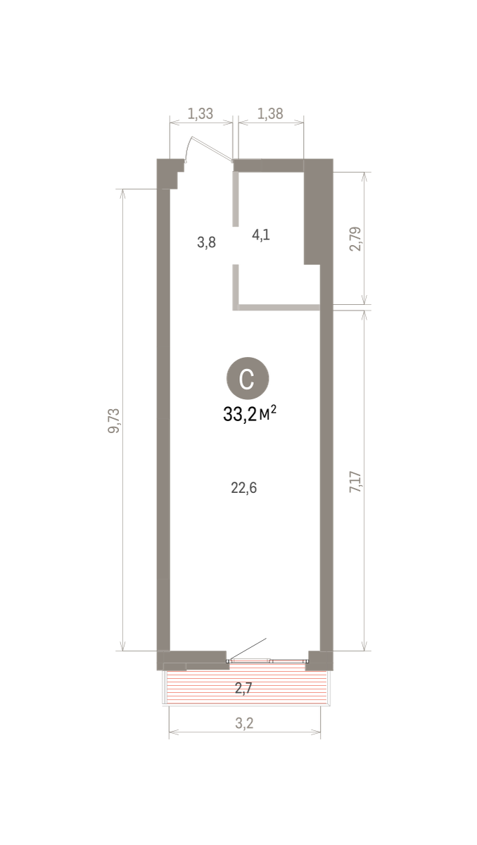 33.00 м² | 14 - 25 эт.
