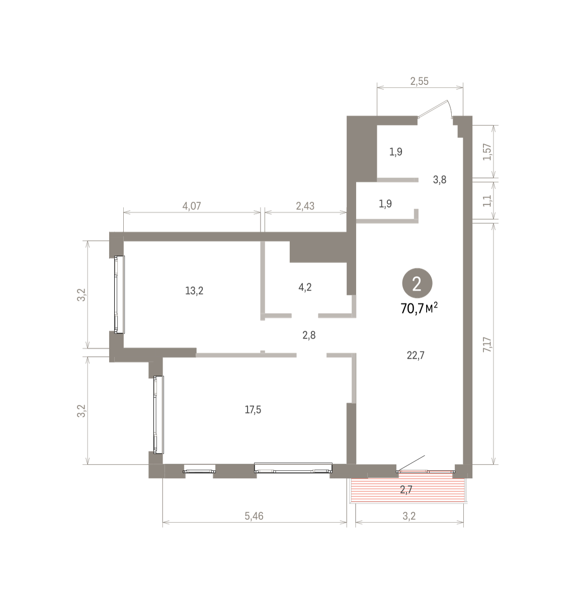 Продаётся с кладовой. Квартира с кухней-гостиной и двумя спальнями в квартале «Траектория». Особенности планировки: балкон, вид во двор, второй санузел, гардеробная, предчистовая отделка, разнесённые спальни. № квартиры в нашей базе: МНВ01-Ж1.23.3.