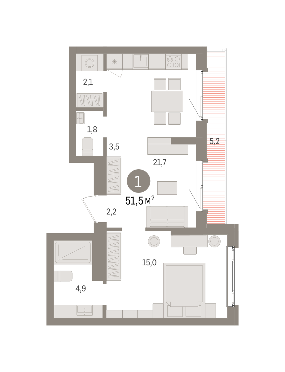 Продаётся с кладовой. Квартира с кухней-гостиной и одной спальней в квартале «Траектория». Особенности планировки: гардеробная, мастер-спальня, постирочная, предчистовая отделка, терраса на крыше. № квартиры в нашей базе: МНВ01-Ж1.22.1.