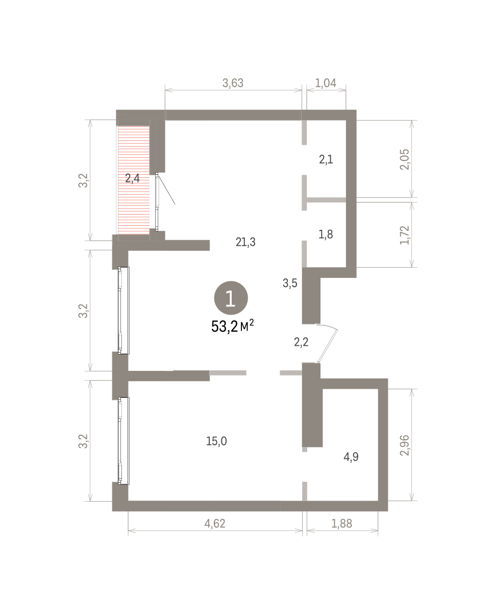 53.00 м² | 21 - 25 эт.