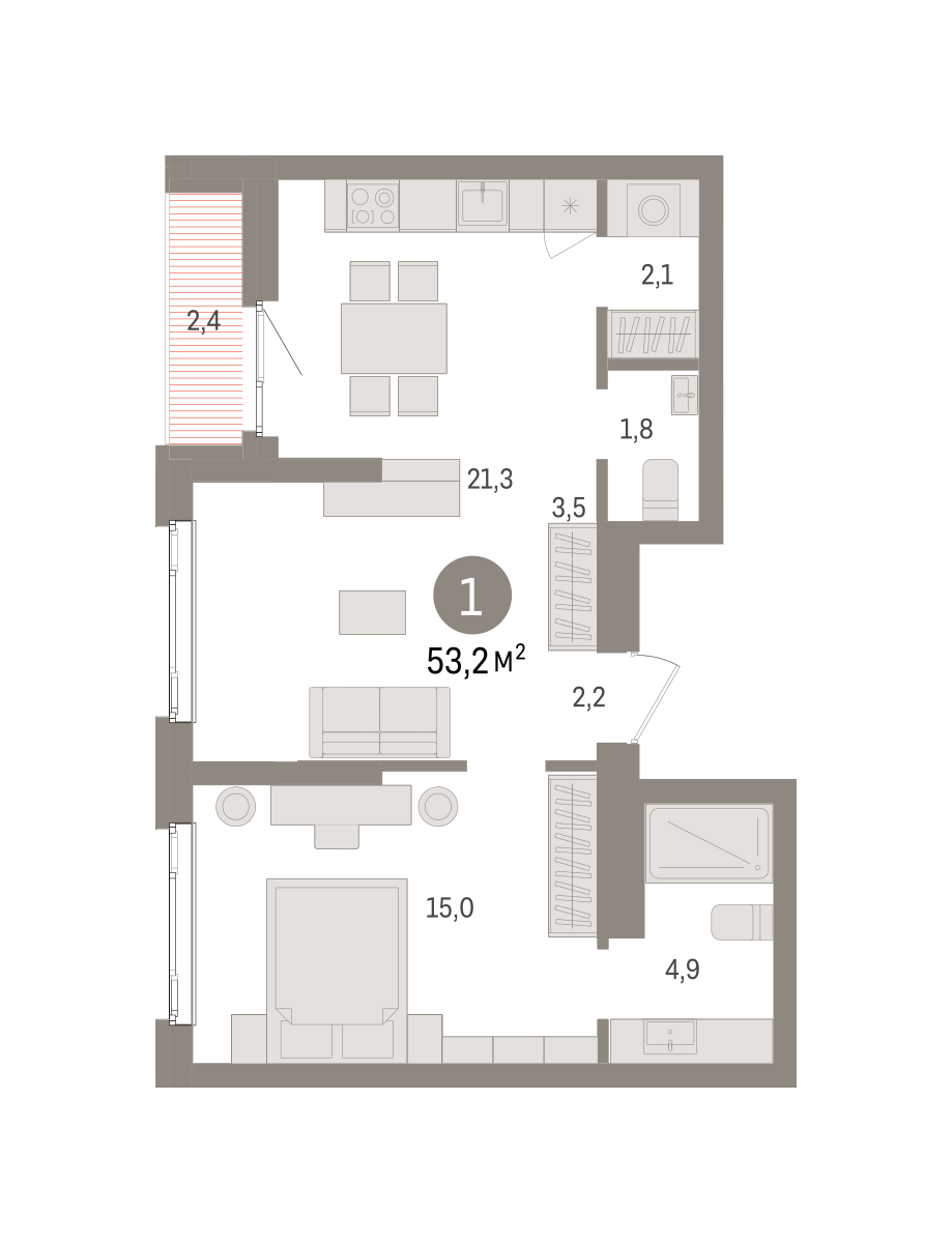 Продаётся с кладовой. Квартира с кухней-гостиной и одной спальней в квартале «Траектория». Особенности планировки: гардеробная, лоджия, мастер-спальня, постирочная, предчистовая отделка. № квартиры в нашей базе: МНВ01-Ж1.21.4.