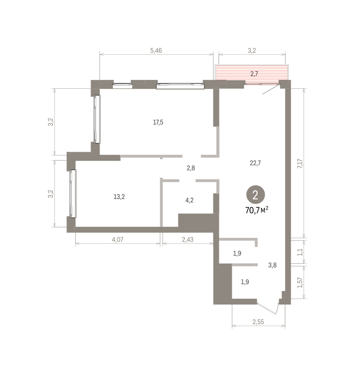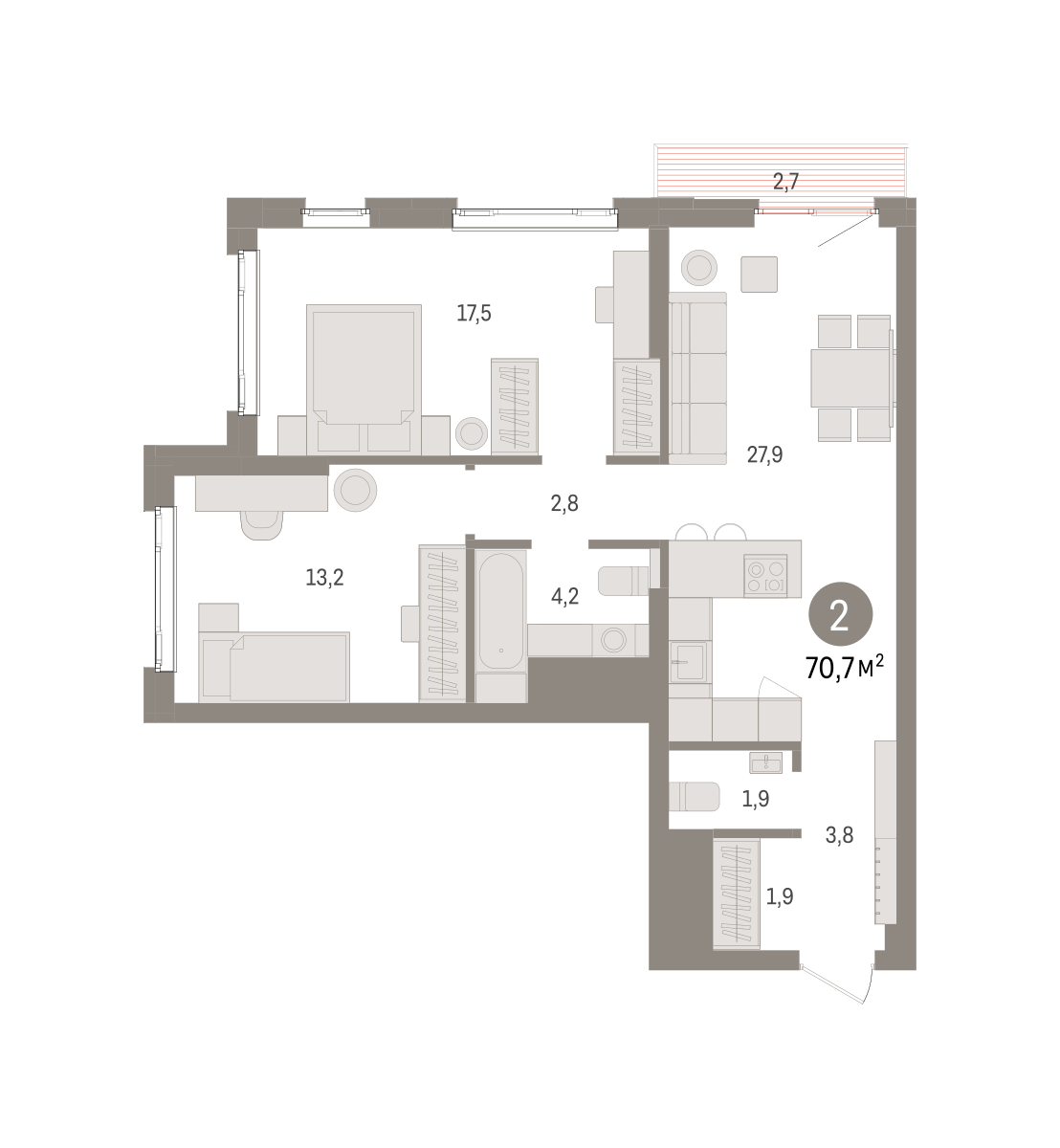 Продаётся с кладовой. Квартира с кухней-гостиной и двумя спальнями в квартале «Траектория». Особенности планировки: балкон, второй санузел, гардеробная, предчистовая отделка, разнесённые спальни. № квартиры в нашей базе: МНВ01-Ж1.23.6.