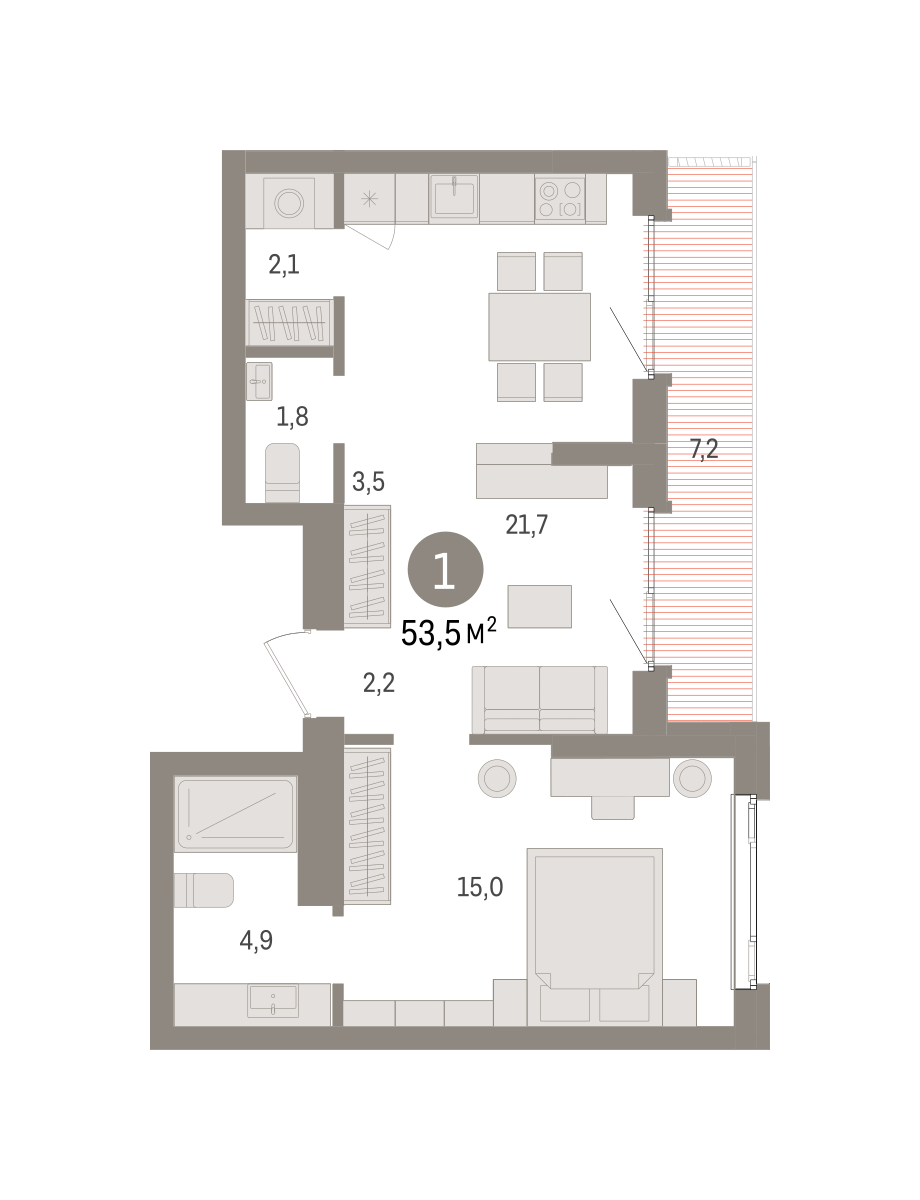 Продаётся с кладовой. Квартира с кухней-гостиной и одной спальней в квартале «Траектория». Особенности планировки: балкон, гардеробная, мастер-спальня, постирочная, предчистовая отделка. № квартиры в нашей базе: МНВ01-Ж1.23.1.
