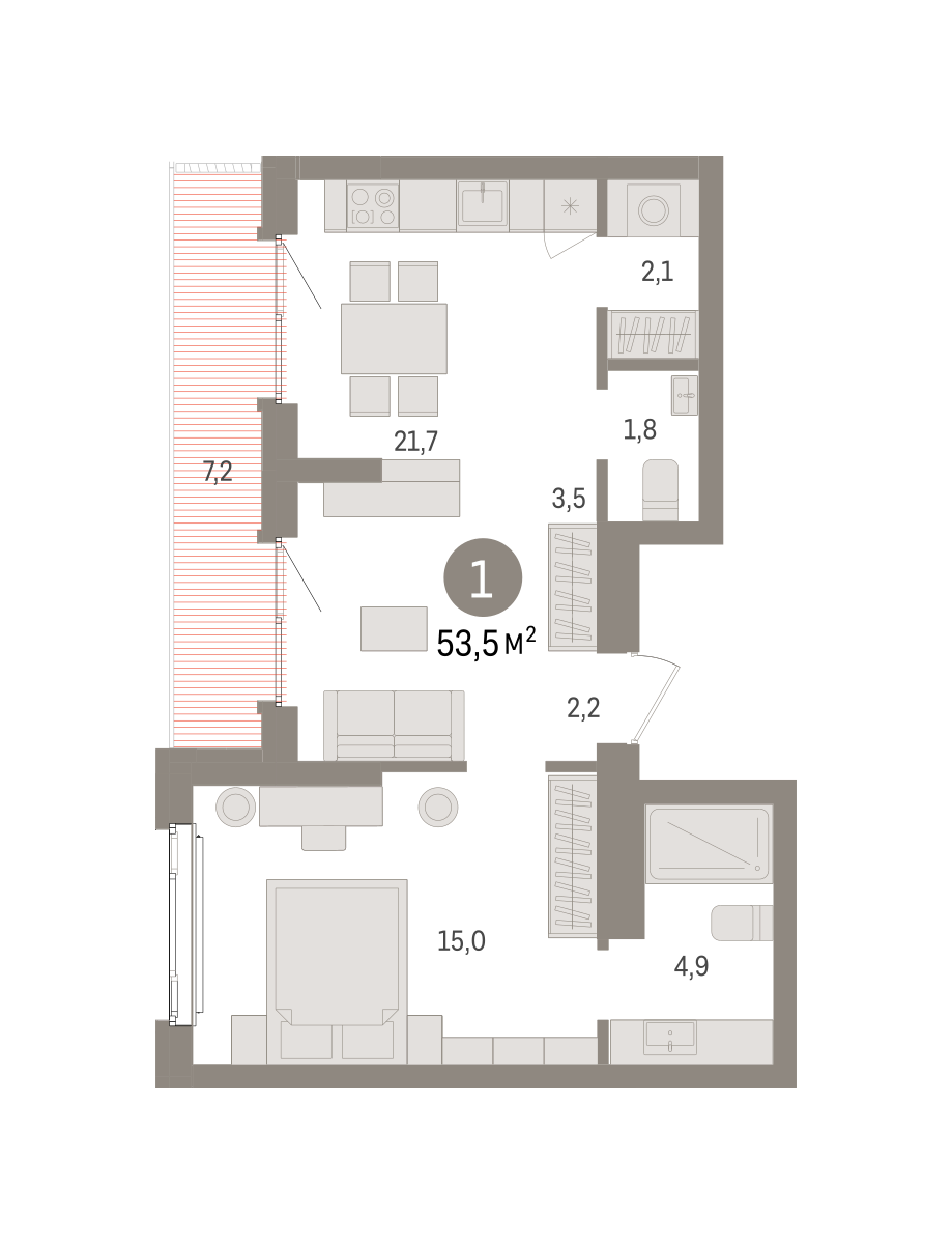 Продаётся с кладовой. Квартира с кухней-гостиной и одной спальней в квартале «Траектория». Особенности планировки: балкон, гардеробная, мастер-спальня, постирочная, предчистовая отделка. № квартиры в нашей базе: МНВ01-Ж1.23.4.