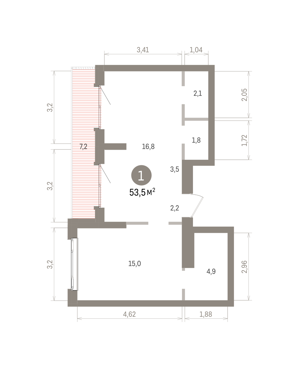 54.80 м² | 16 - 16 эт.