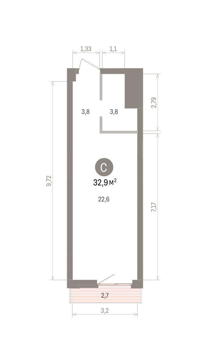 33.00 м² | 19 - 25 эт.