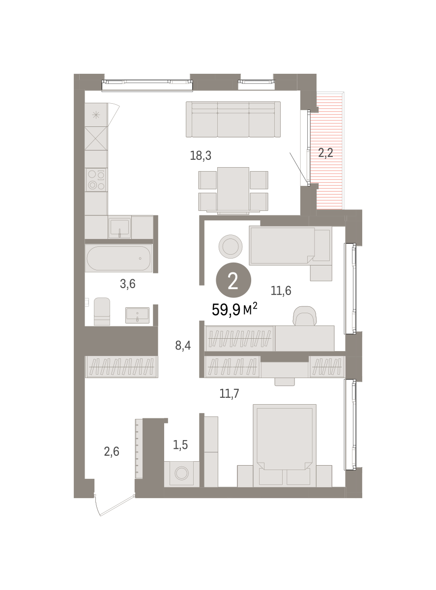 59.61 м² | 21 - 25 эт.
