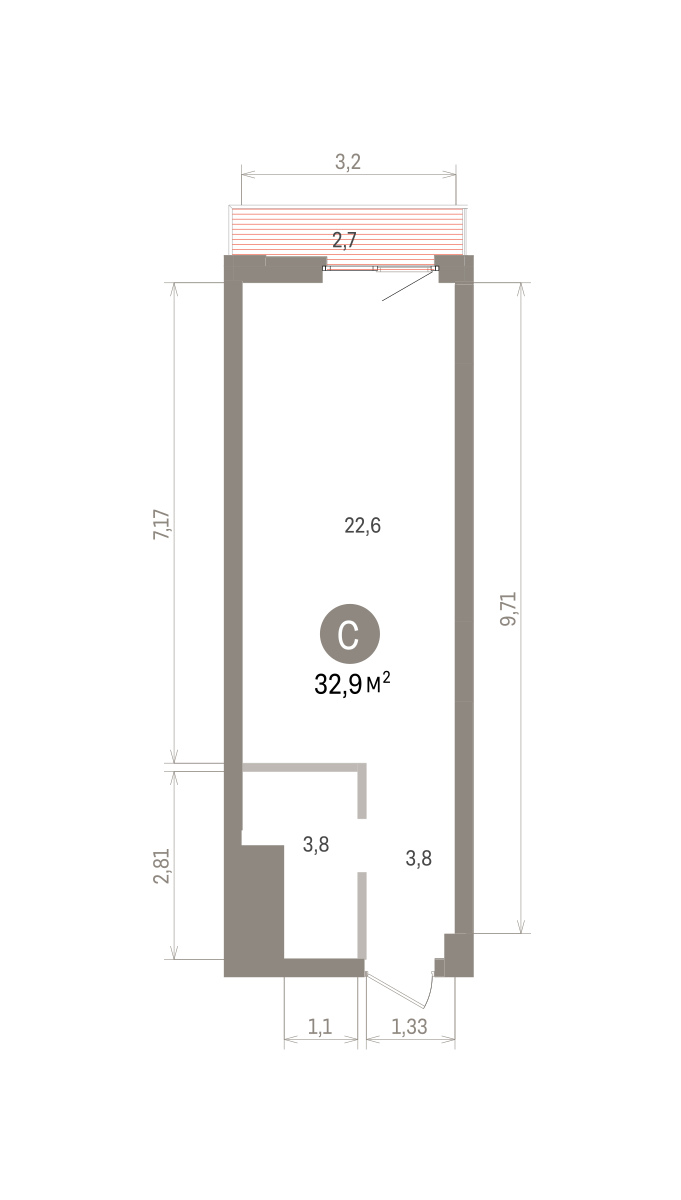 33.00 м² | 19 - 25 эт.
