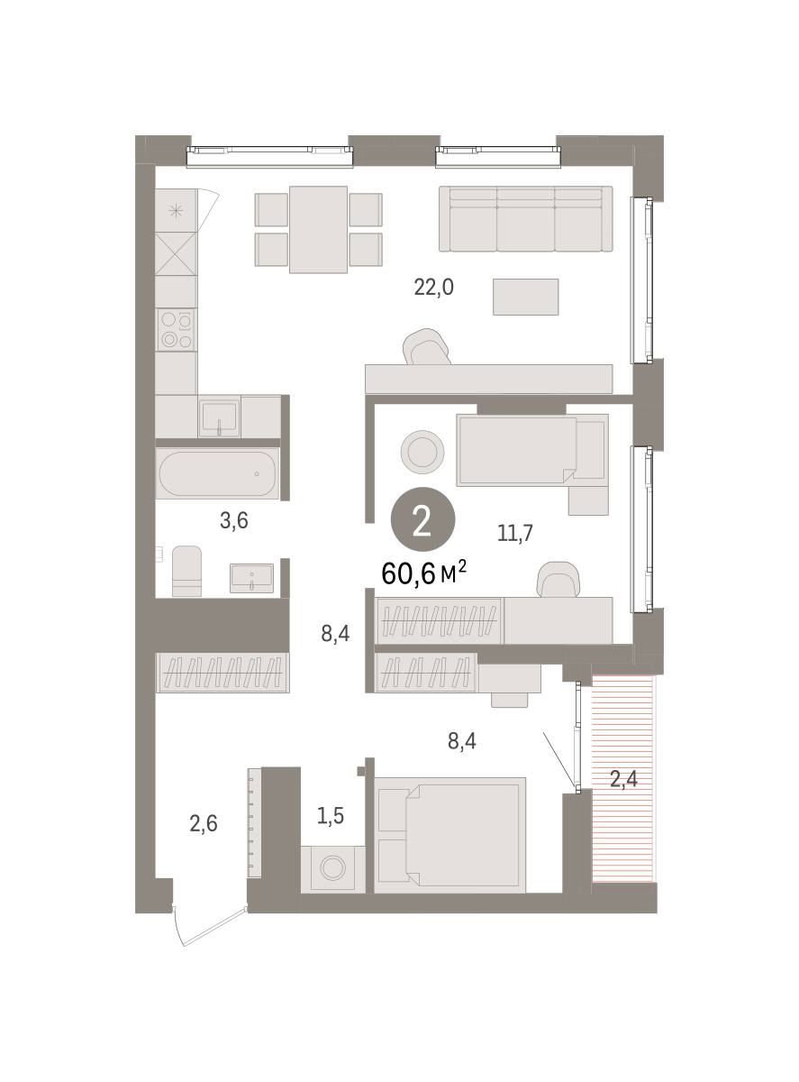 59.70 м² | 12 - 19 эт.