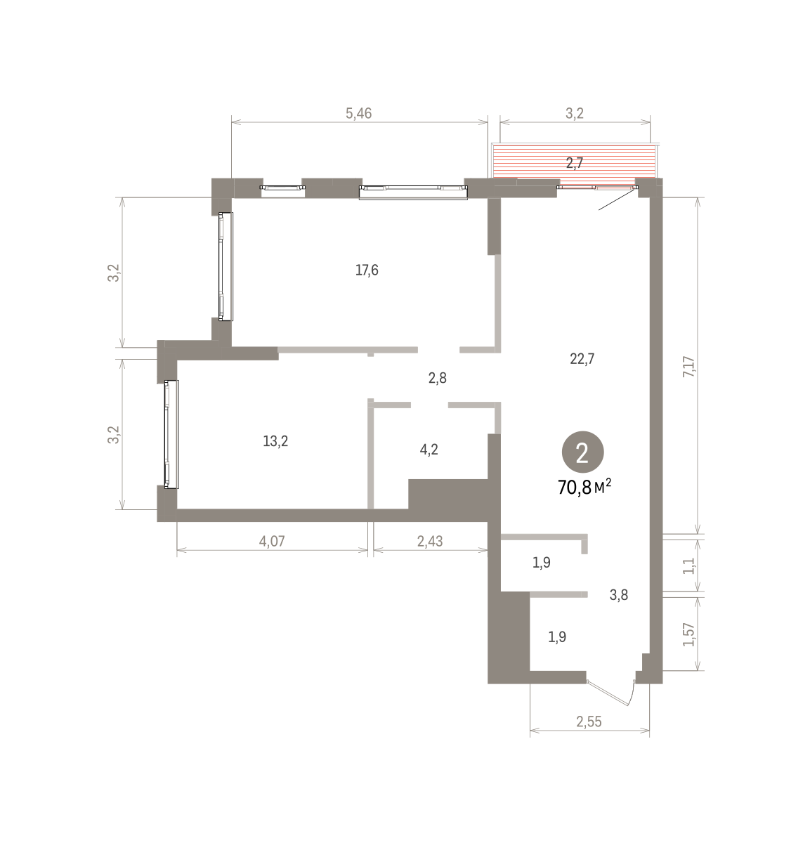 Продаётся с кладовой. Квартира с кухней-гостиной и двумя спальнями в квартале «Траектория». Особенности планировки: балкон, второй санузел, гардеробная, предчистовая отделка, разнесённые спальни. № квартиры в нашей базе: МНВ01-Ж1.21.6.