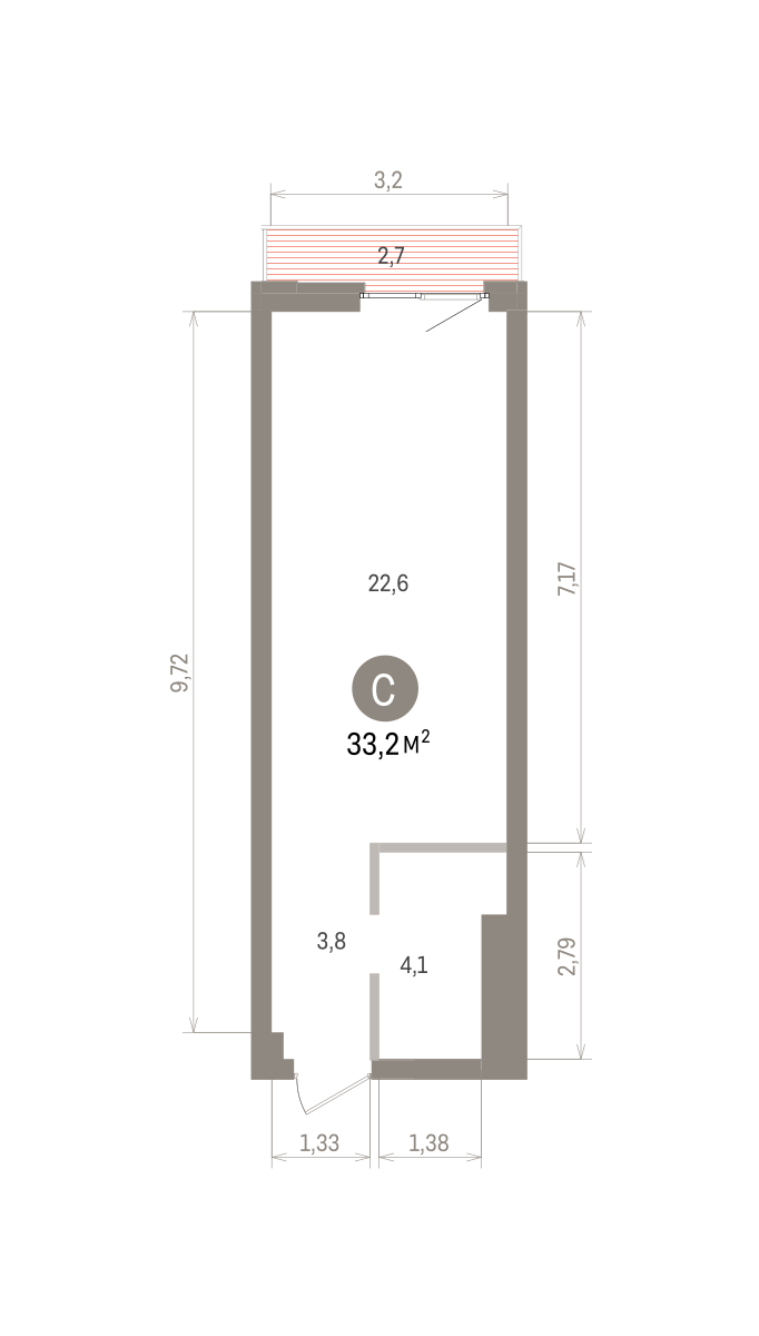 33.00 м² | 16 - 25 эт.