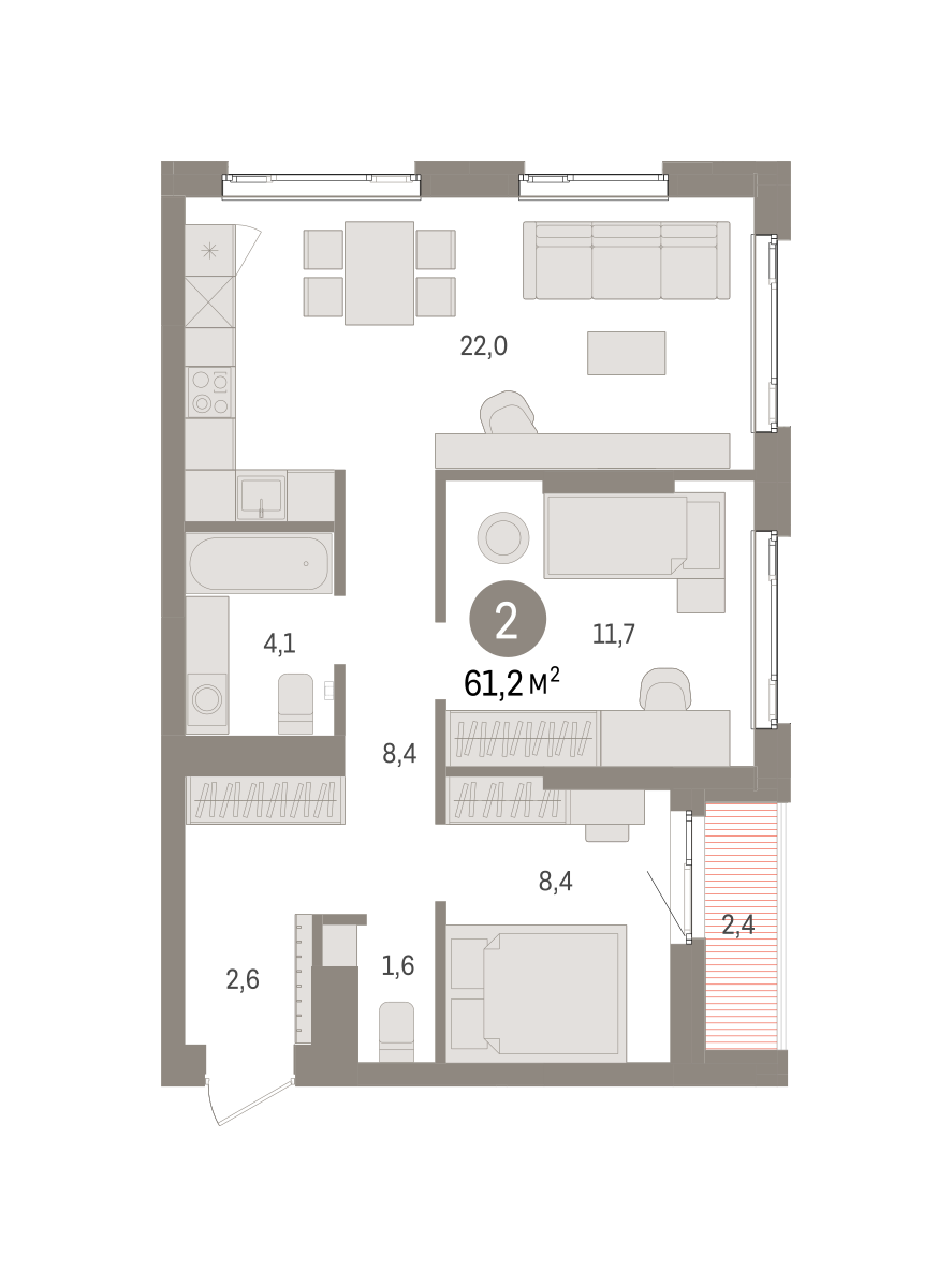 61.30 м² | 2 - 19 эт.
