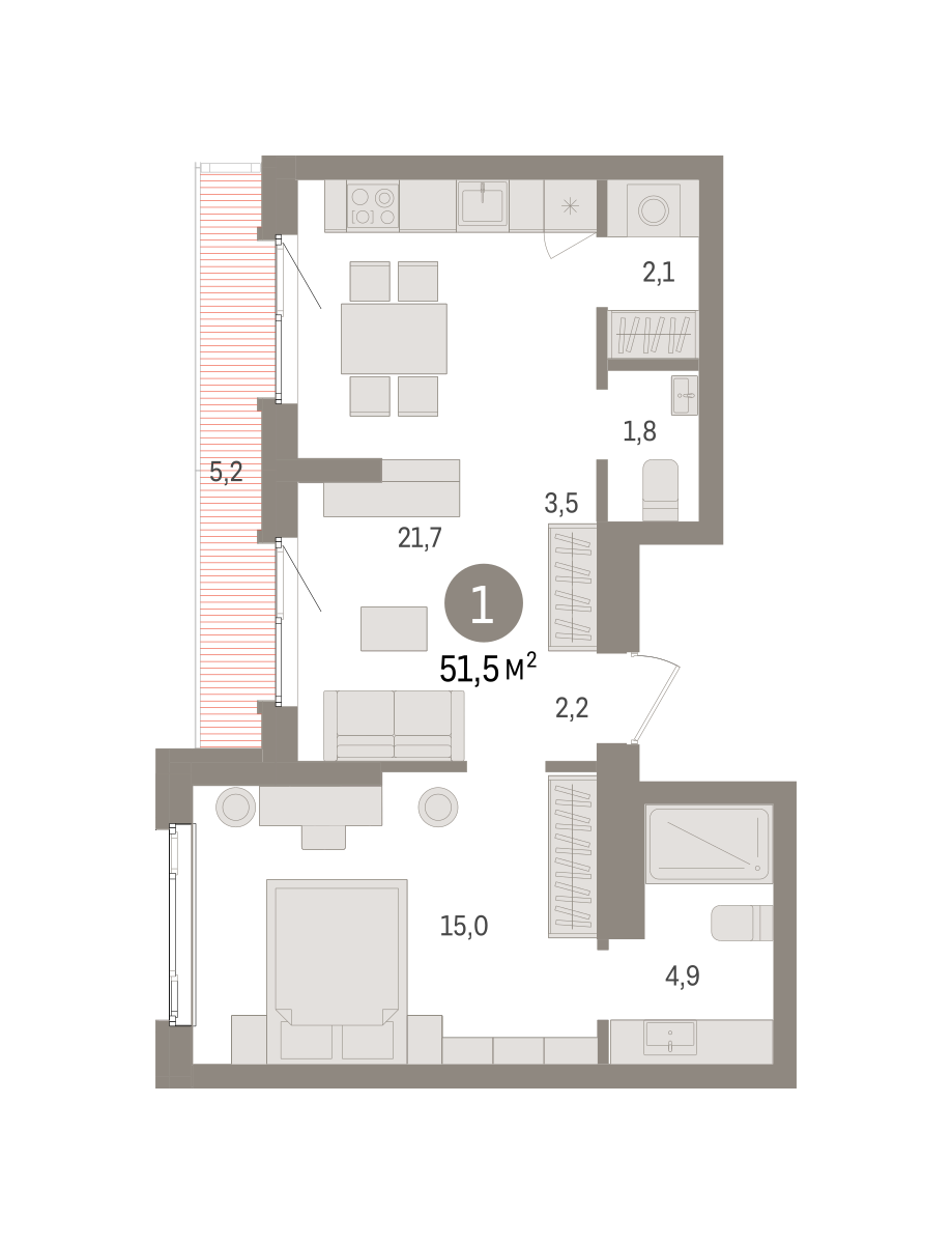 Продаётся с кладовой. Квартира с кухней-гостиной и одной спальней в квартале «Траектория». Особенности планировки: гардеробная, мастер-спальня, постирочная, предчистовая отделка, терраса на крыше. № квартиры в нашей базе: МНВ01-Ж1.22.4.