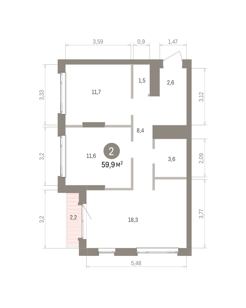 59.00 м² | 20 - 25 эт.