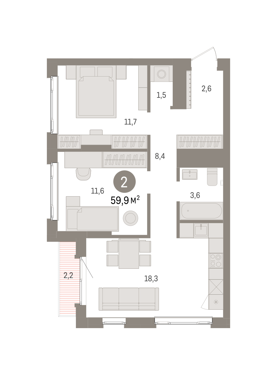 59.70 м² | 12 - 19 эт.