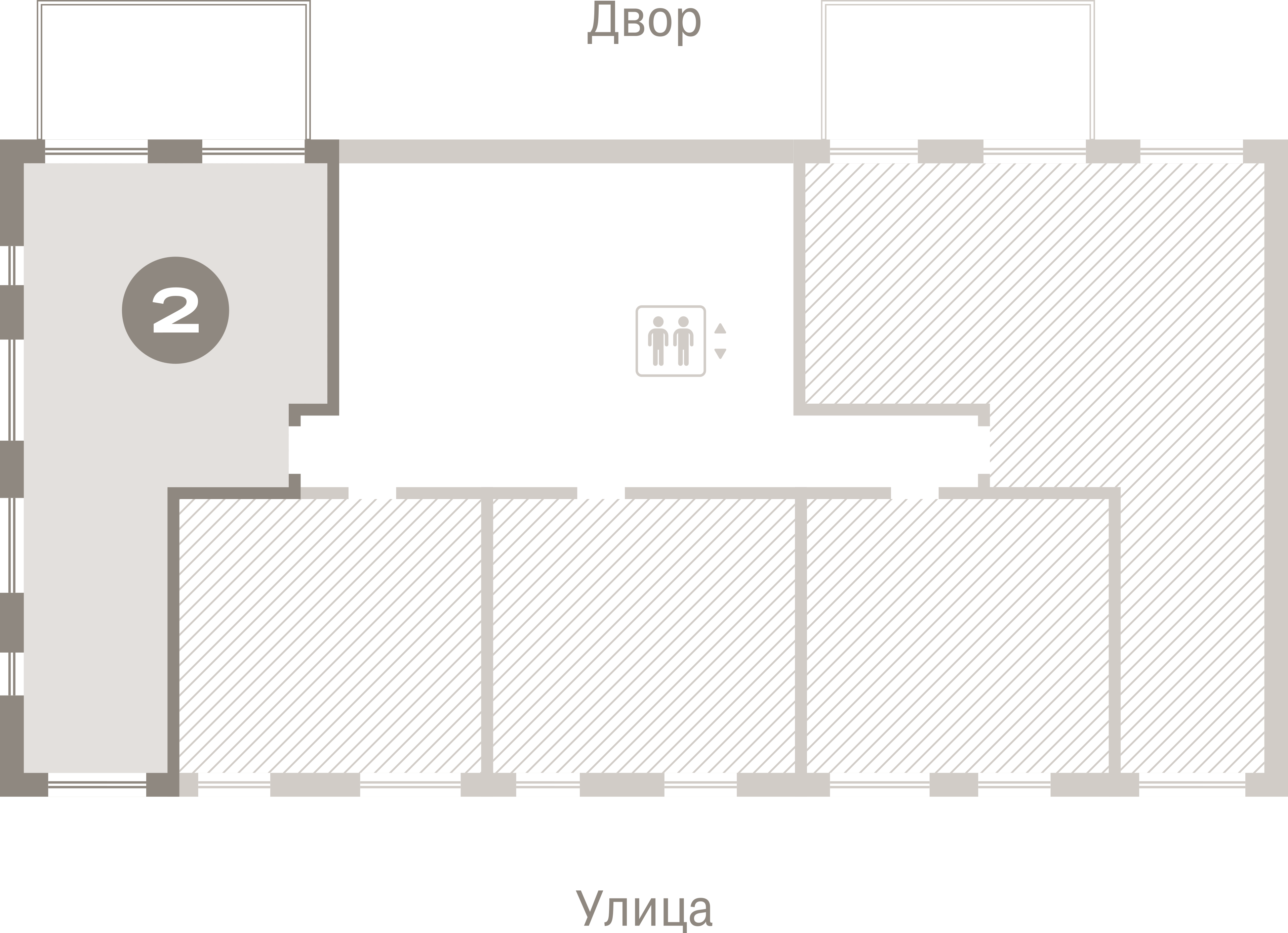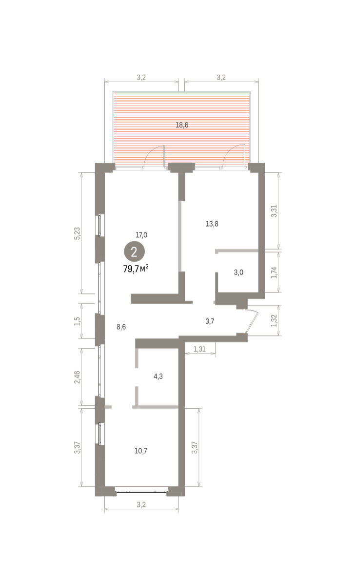 Квартира с кухней-гостиной и двумя спальнями в квартале «Траектория». Особенности планировки: вид во двор, мастер-спальня, потолки 3 м и выше, предчистовая отделка, разнесённые спальни, терраса.
