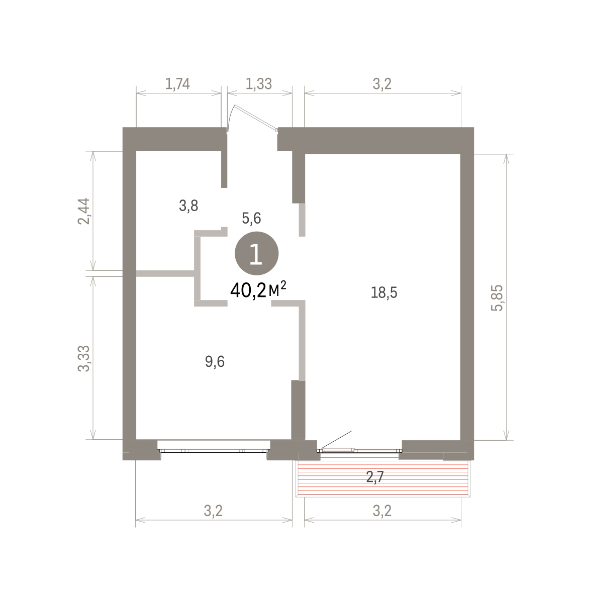 39.00 м² | 7 - 9 эт.