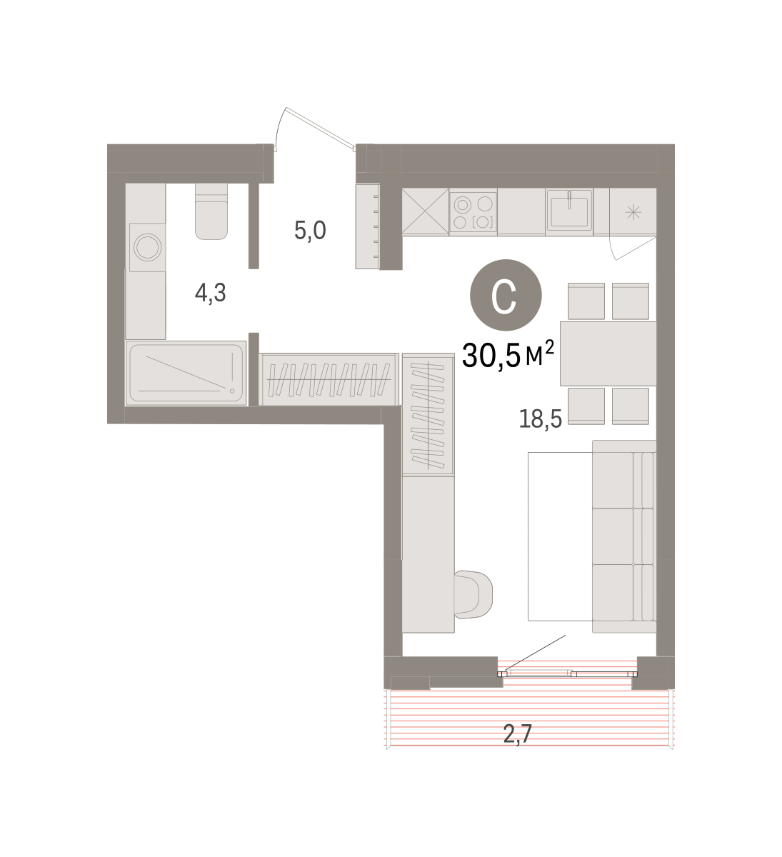 29.40 м² | 30 - 31 эт.