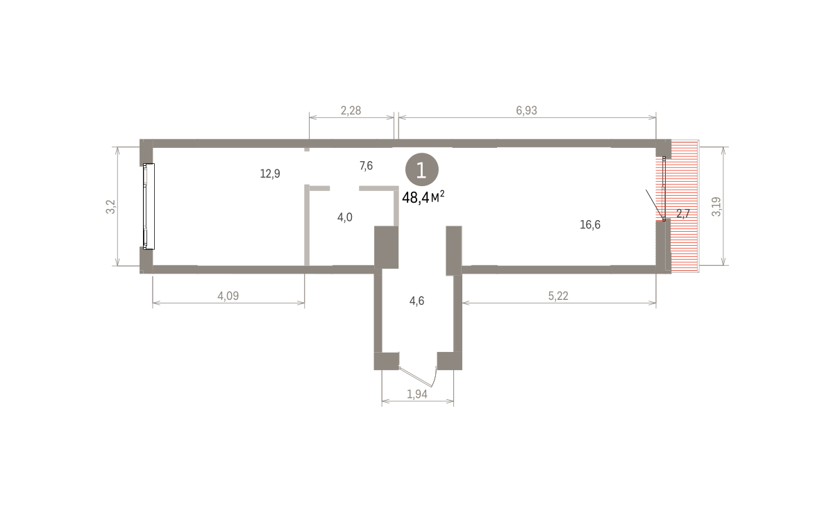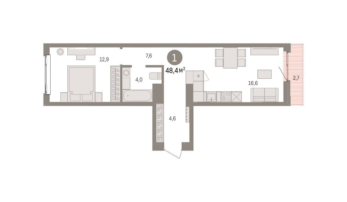 Продаётся с кладовой. Квартира с кухней-гостиной и одной спальней в квартале «Траектория». Особенности планировки: балкон, вид во двор, окна на две стороны, предчистовая отделка. № квартиры в нашей базе: МНВ01-Ж5.6.8.