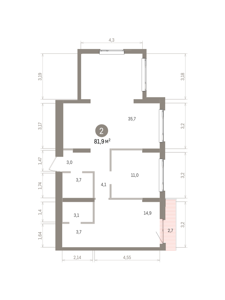 57.30 м² | 3 - 19 эт.