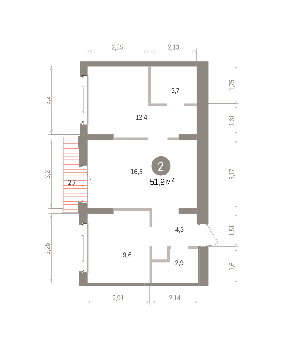 Продаётся с кладовой. Квартира с кухней-гостиной и двумя спальнями в квартале «Траектория». Особенности планировки: балкон, вид во двор, гардеробная, мастер-спальня, предчистовая отделка, разнесённые спальни. № квартиры в нашей базе: МНВ01-Ж2.5.1.