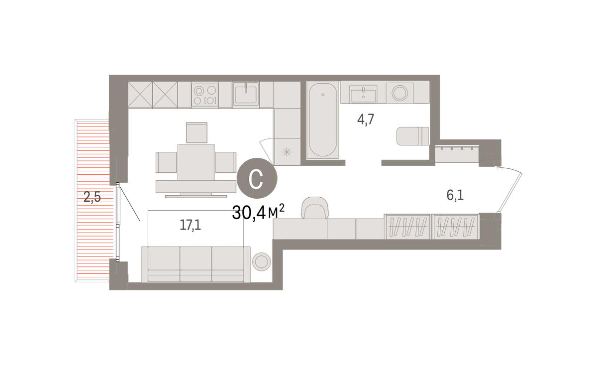 29.40 м² | 30 - 31 эт.