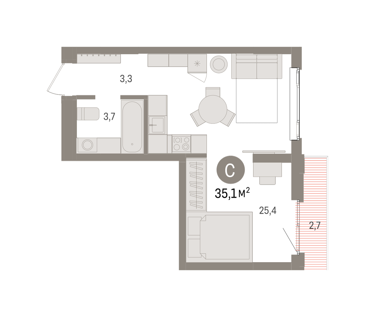 35.40 м² | 16 - 16 эт.