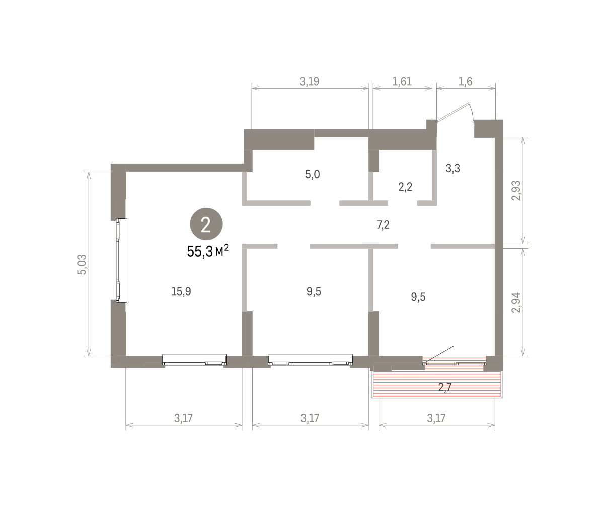 55.00 м² | 10 - 16 эт.