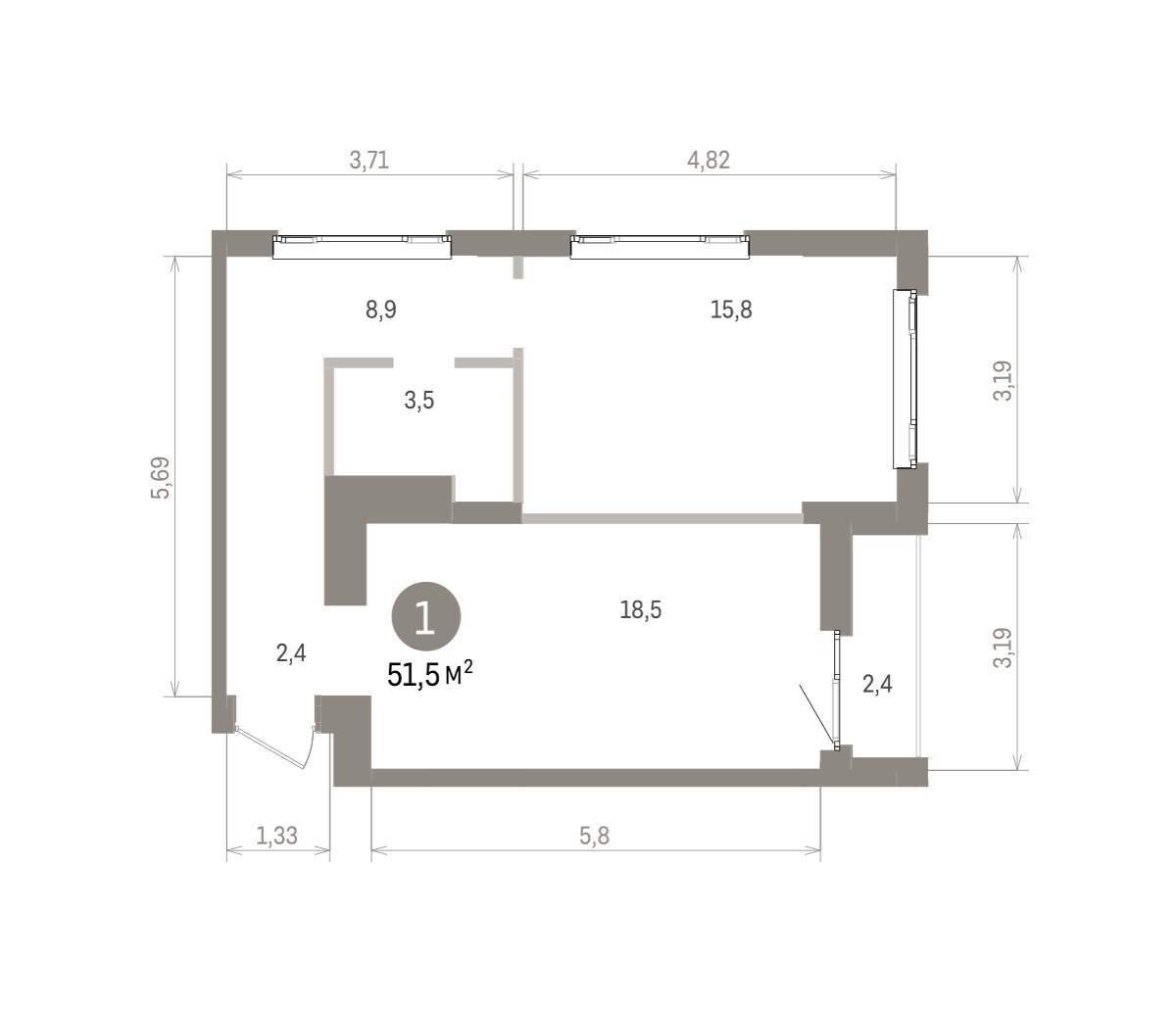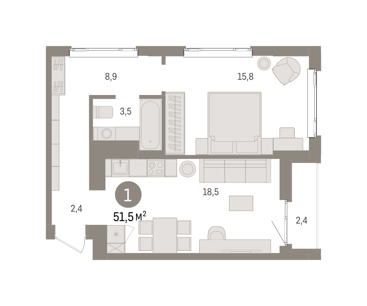 51.80 м² | 13 - 19 эт.