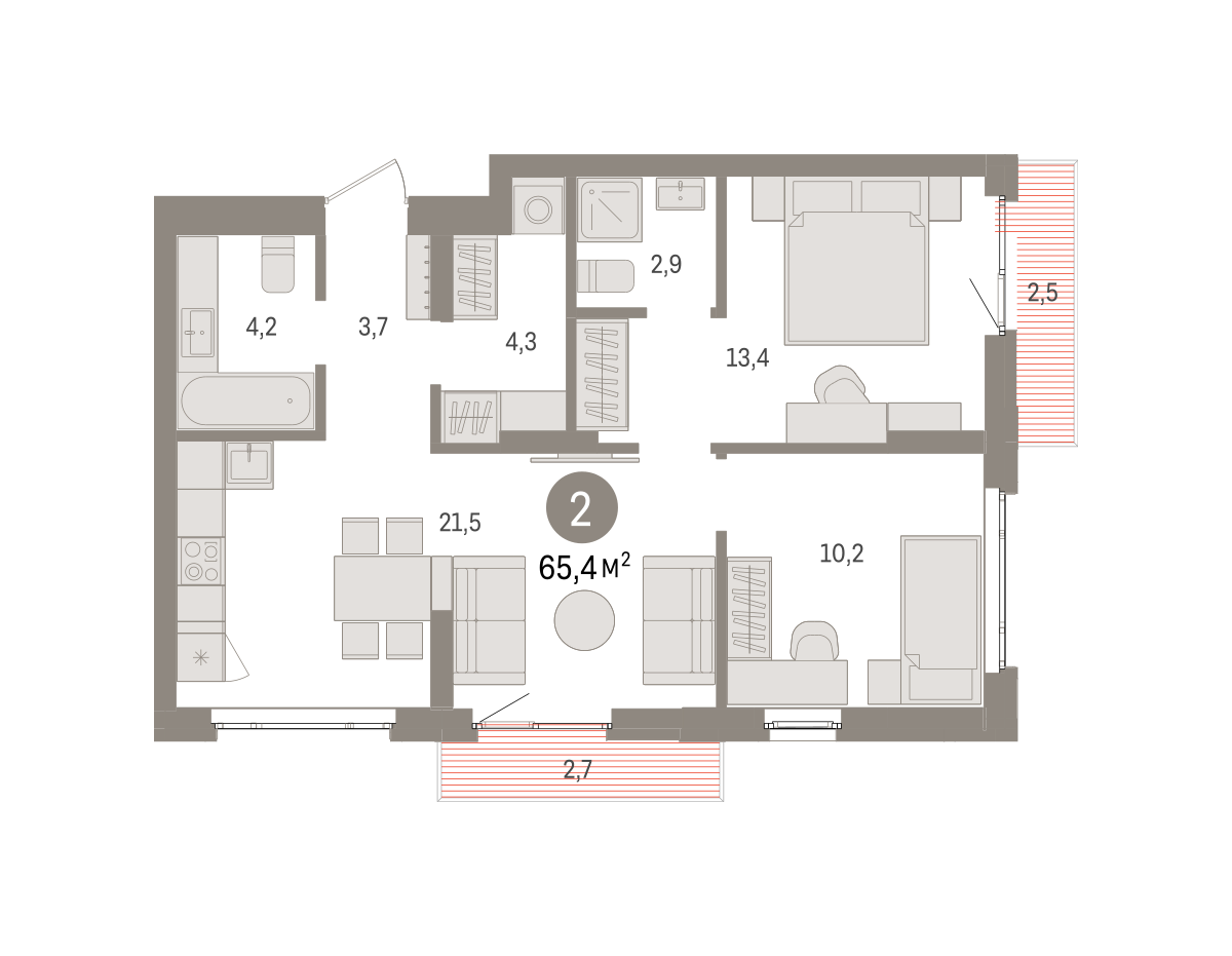 57.30 м² | 3 - 19 эт.