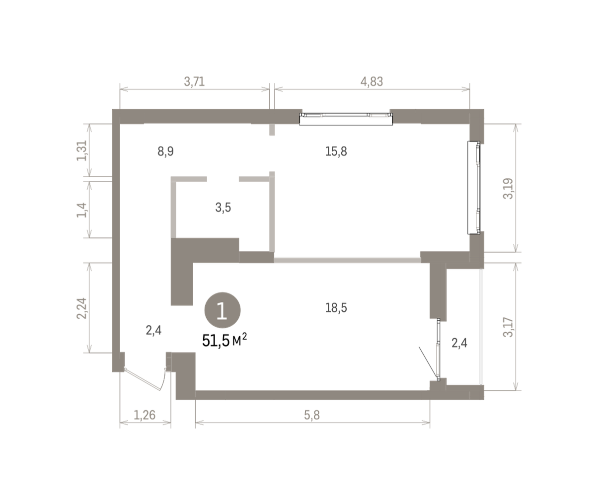 1-к квартира | 38.80 м² | 22 - 26 эт.
