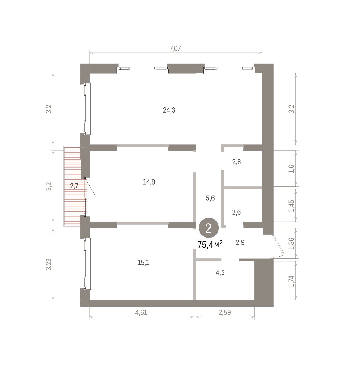 75.30 м² | 8 - 19 эт.