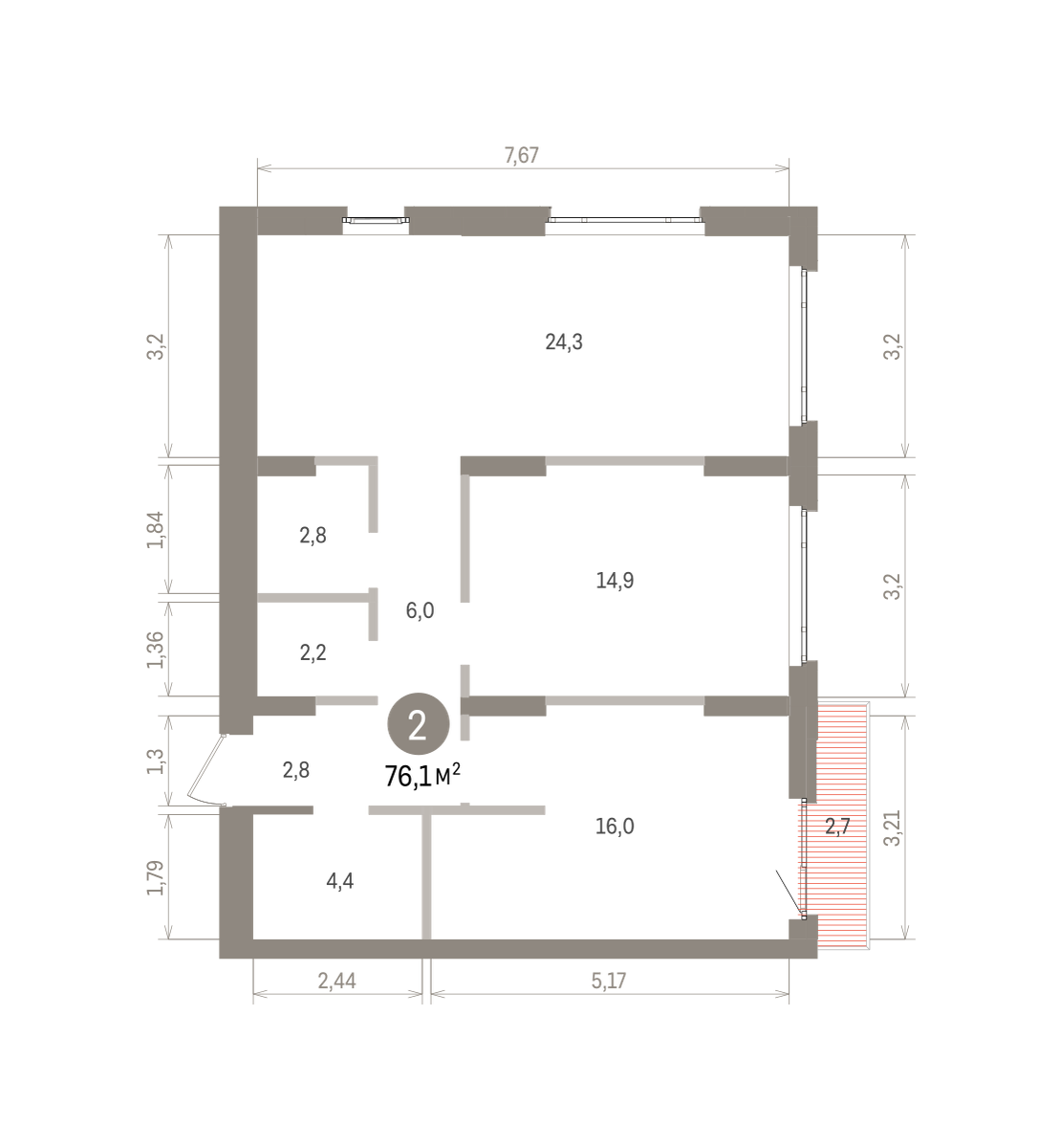 Продаётся с кладовой. Квартира с кухней-гостиной и двумя спальнями в квартале «Траектория». Особенности планировки: балкон, вид во двор, второй санузел, гардеробная, предчистовая отделка, разнесённые спальни. № квартиры в нашей базе: МНВ01-Ж9.10.6.