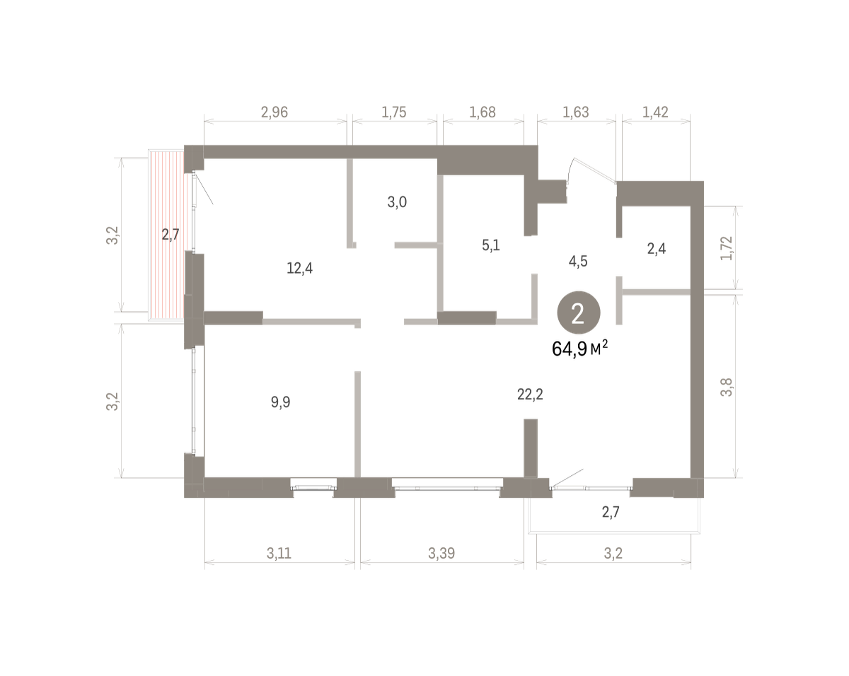 39.00 м² | 7 - 9 эт.