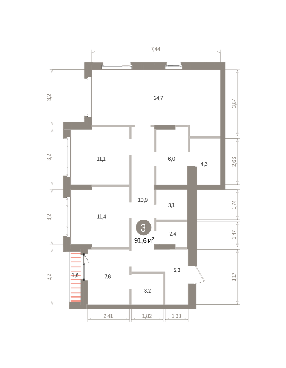 91.00 м² | 14 - 16 эт.