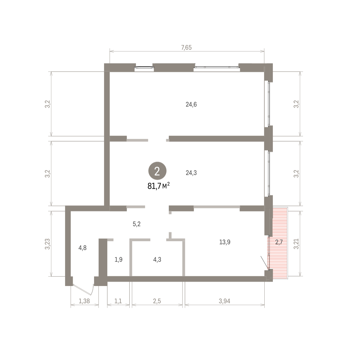 Квартира с кухней-гостиной и двумя спальнями в квартале «Траектория». Особенности планировки: балкон, вид во двор, второй санузел, предчистовая отделка, разнесённые спальни. № квартиры в нашей базе: МНВ01-Ж9.14.5.