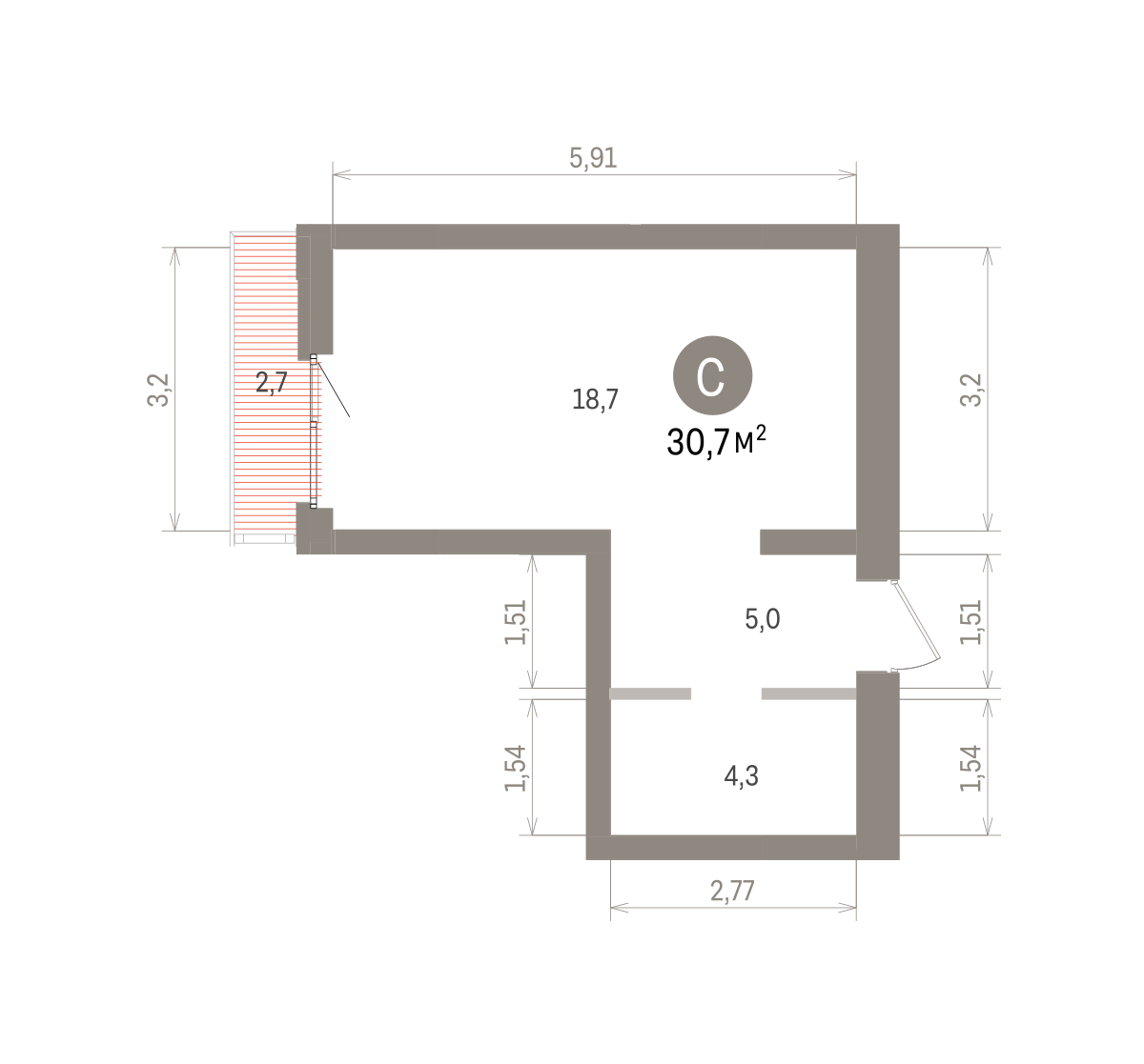 Студия в квартале «Траектория». Особенности планировки: балкон, предчистовая отделка. № квартиры в нашей базе: МНВ01-Ж7.5.4.