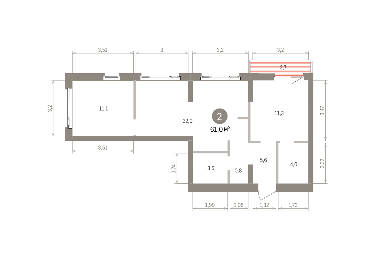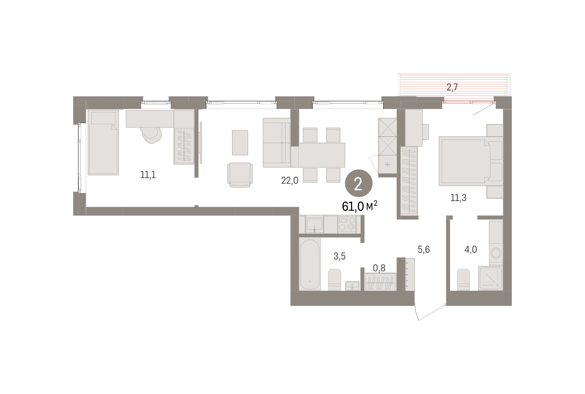 Продаётся с кладовой. Квартира с кухней-гостиной и двумя спальнями в квартале «Траектория». Особенности планировки: балкон, гардеробная, мастер-спальня, предчистовая отделка, разнесённые спальни. № квартиры в нашей базе: МНВ01-Ж7.5.6.