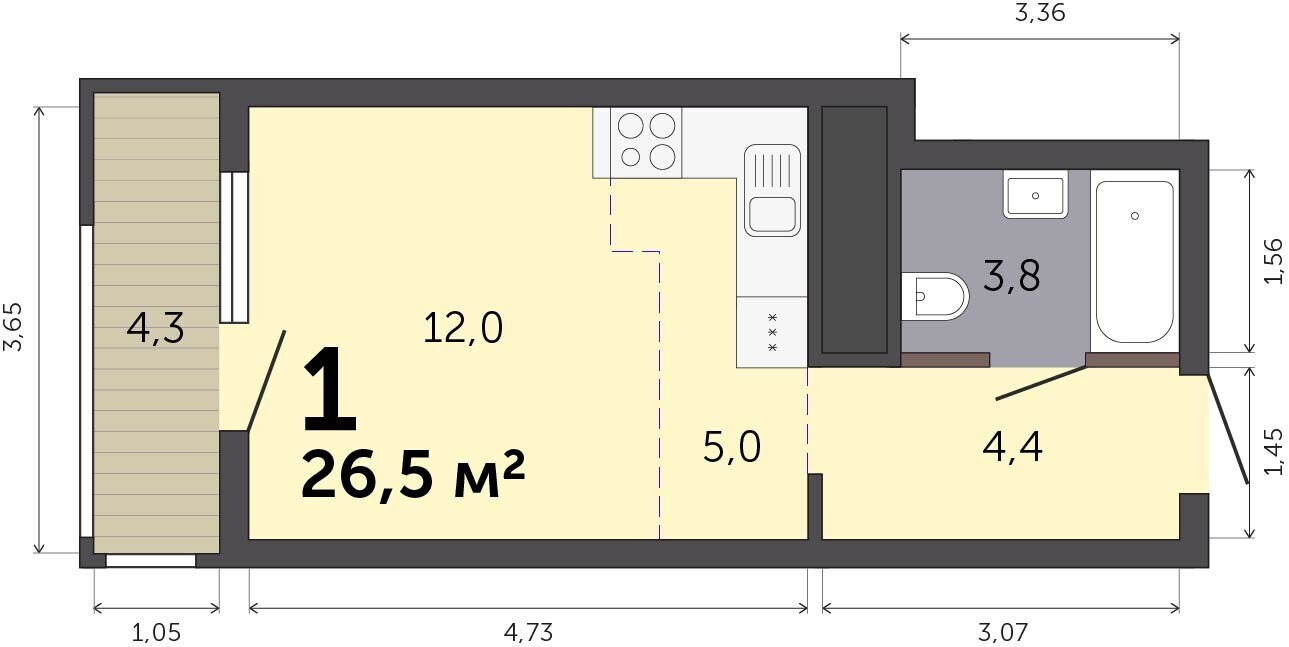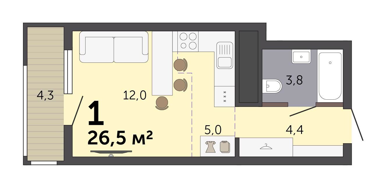 26.20 м² | 26 - 30 эт.