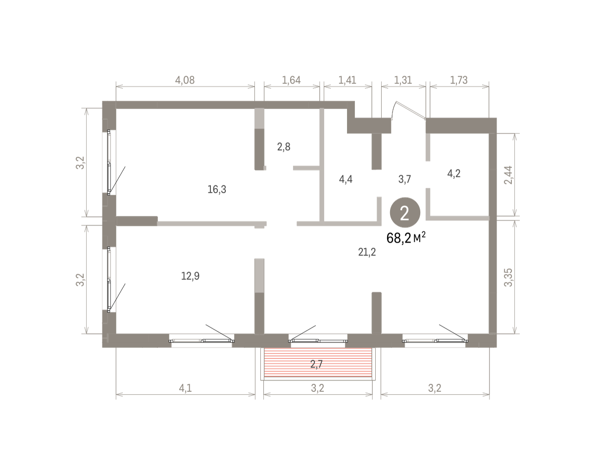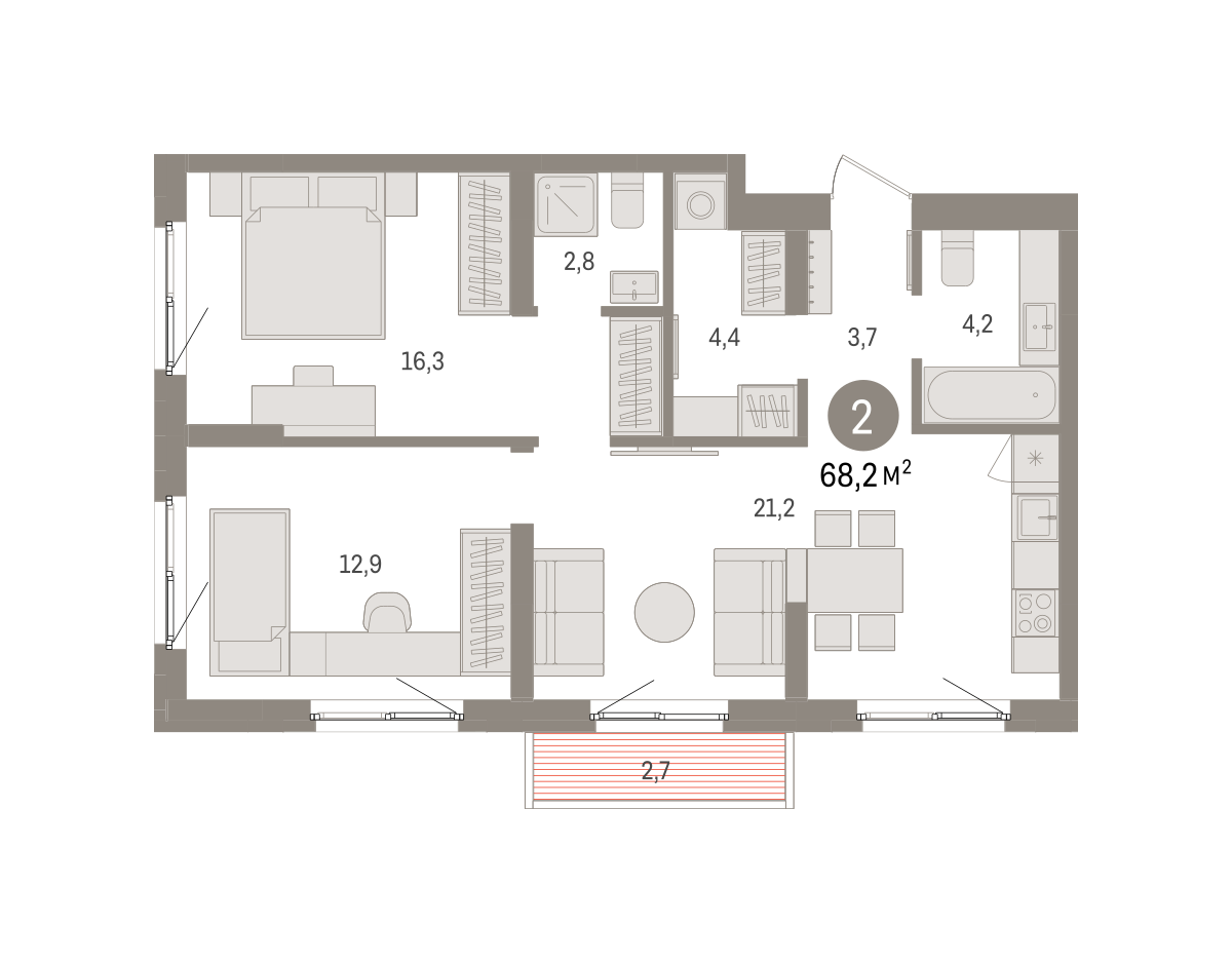 Продаётся с кладовой. Квартира с кухней-гостиной и двумя спальнями в Южных кварталах. Особенности планировки: балкон, гардеробная, мастер-спальня, потолки 3 м и выше, предчистовая отделка. № квартиры в нашей базе: ЮКВ08-Ж7.2.2.